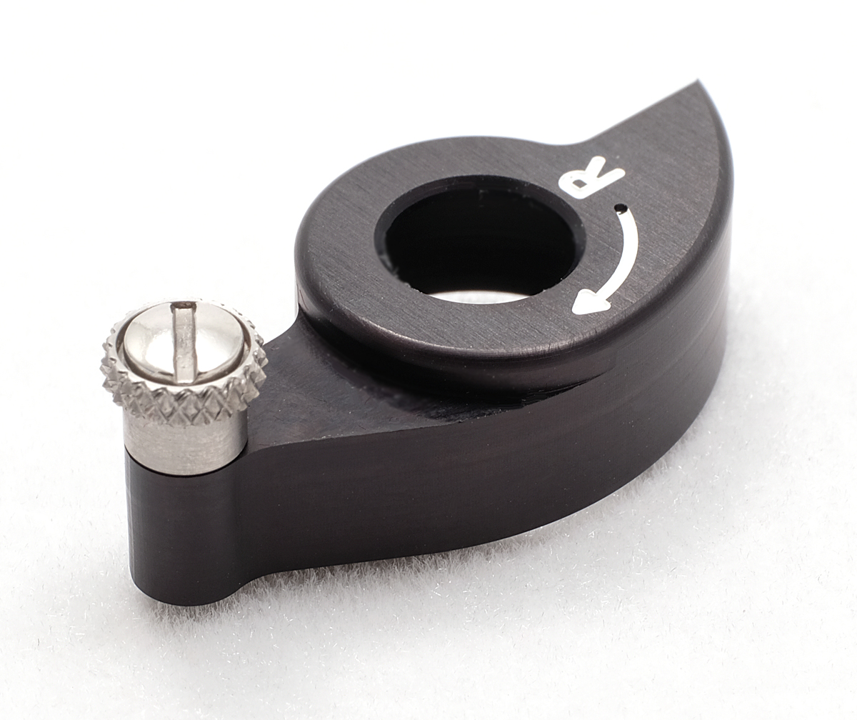 Beautifully machined from aircraft alloy aluminum and stainless steel, the MP-Winder® blends elegantly with the camera body. No unsightly gap at the camera's bottom. The original knurled knob is hidden, and undamaged. Rather than being clipped off flat at the back, a counterbored setscrew hole allows for a continuous curve.