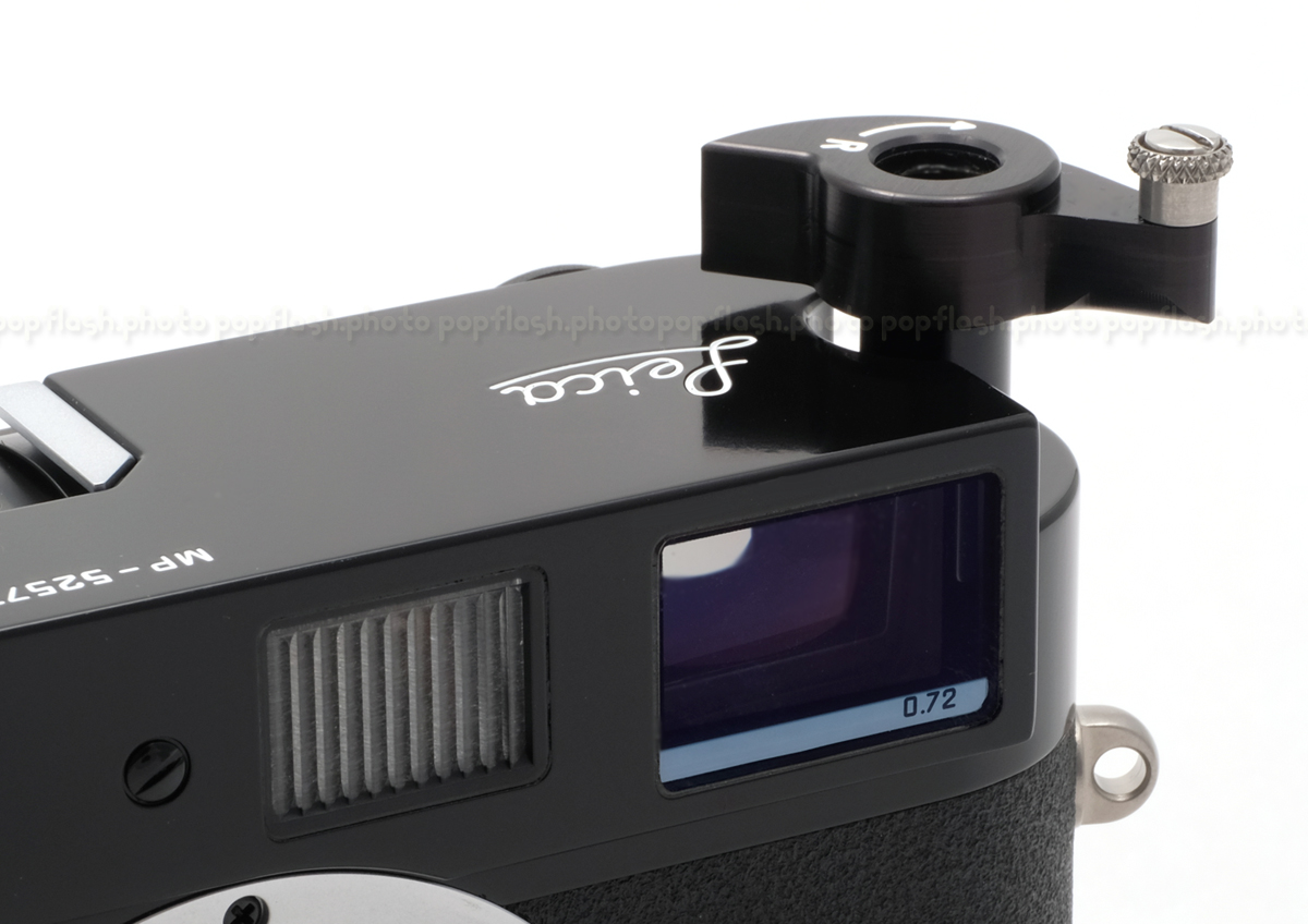 Incorporating a very thin wall completely surrounding the rewind knob, the MP-Winder® drops on smoothly at installation. Even when raised for rewinding, MP-Winder® looks like an integral part of the camera, not an "add on". A crisp diamond knurl on the handle provides an immediate and much more positive grasp.
