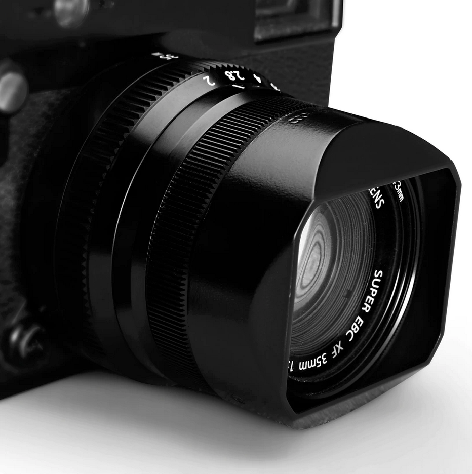 The Squarehood lens hood for the Fujinon XF 23mm f2 and XF 35mm f2 is a bayonet mounted lens hood. It will fit both of the XF 23mm f2 and the XF 35mm f2 Fujinon lenses. The photographer can still use their 43mm filter under this hood.