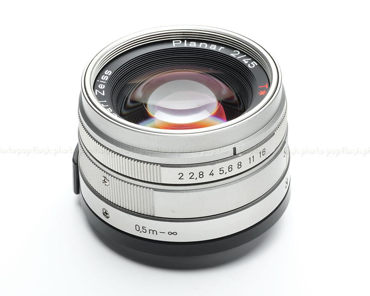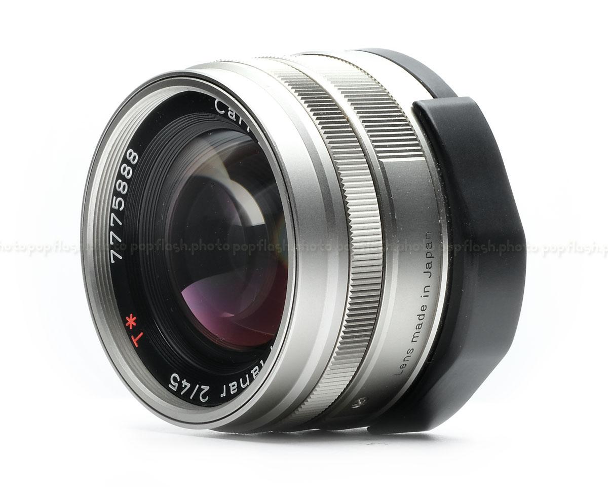 Contax 45mm f/2 Carl Zeiss Planar T* Titanium G-Mount Lens USED with Contax Hood & Filter