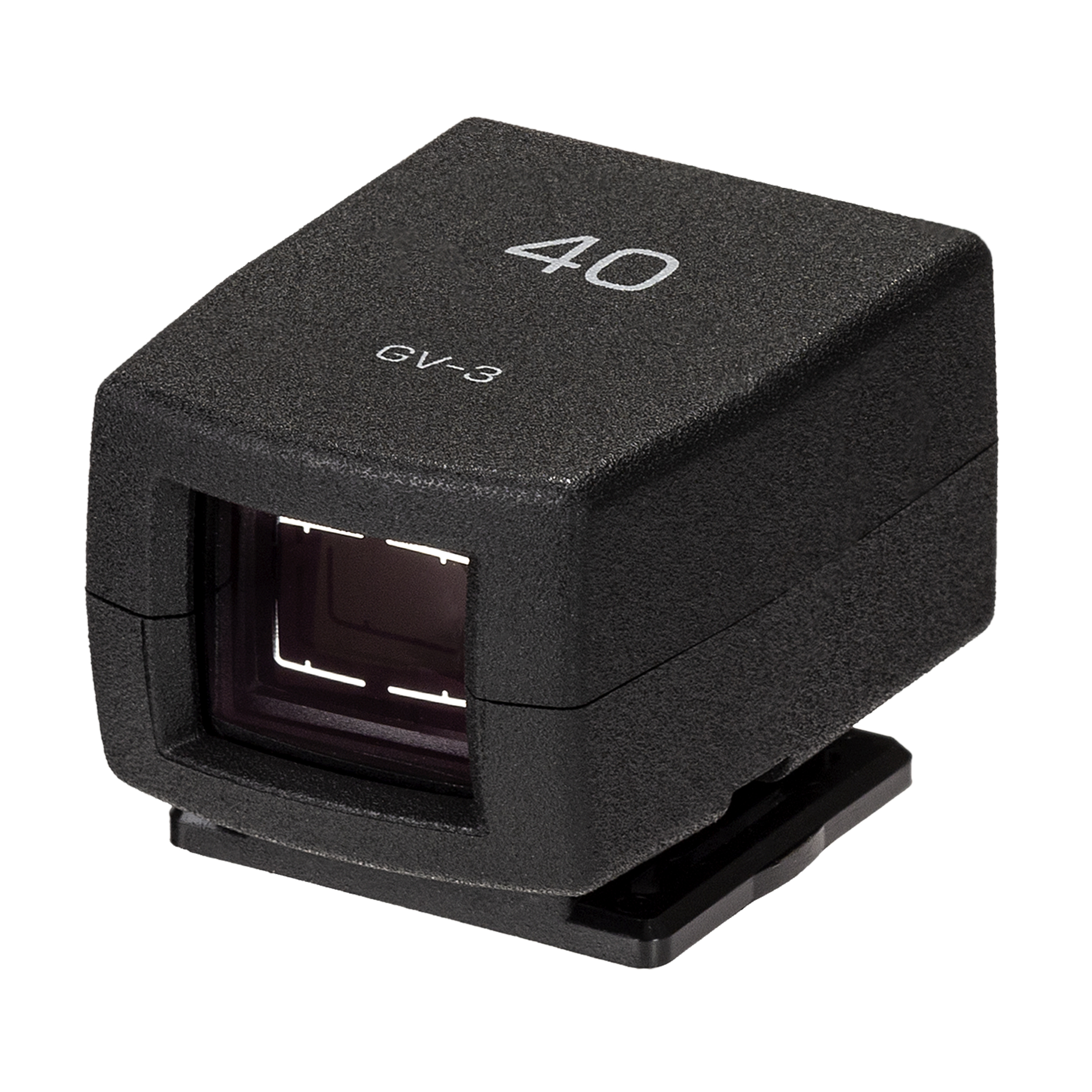 The Ricoh GV-3 External Viewfinder is designed for the Ricoh GR IIIx camera system. The GV-3 attaches to the camera body via the hot shoe and stores nicely in the included case when not in use. Highlights of the GV-3 include 40mm frame and 1:1 aspect ratio marks.